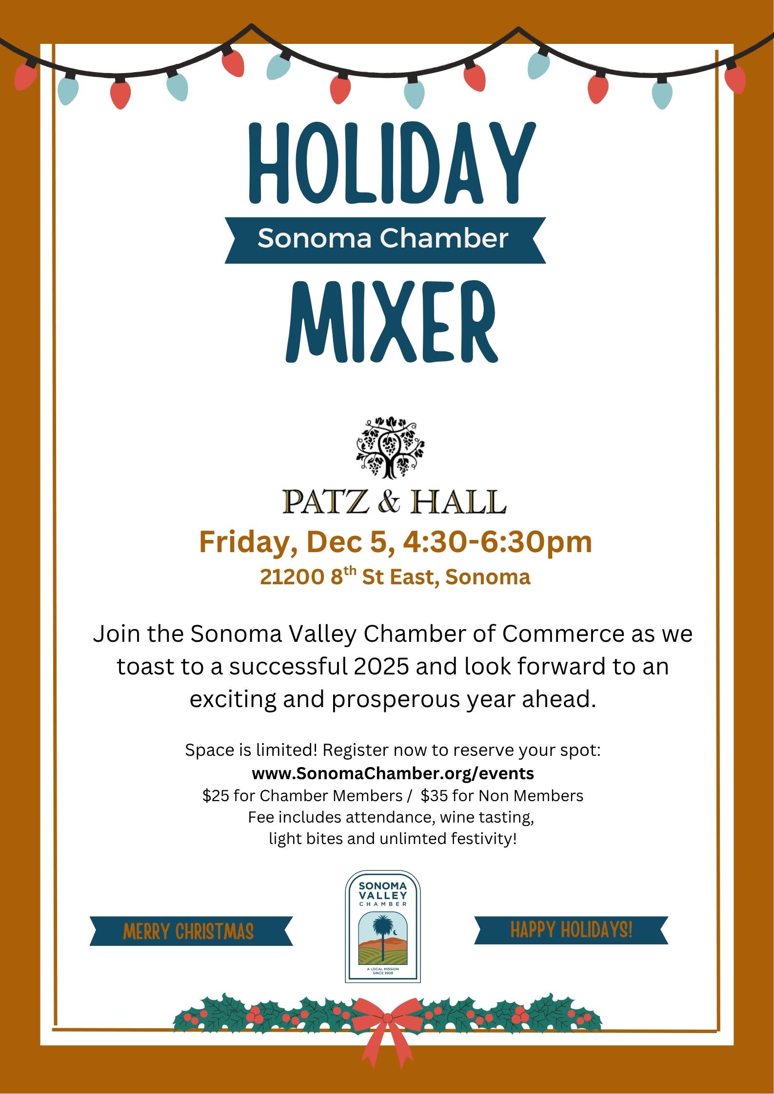 Join the Sonoma Chamber of Commerce as we toast a successful 2025 and look forward to an exciting year ahead!